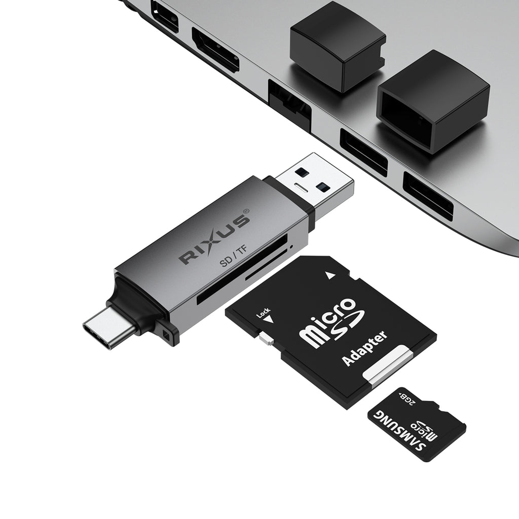 Rixus RXCR02 4-1 USB 3.0, USB-C To SD/TF Card Reader Space Gray