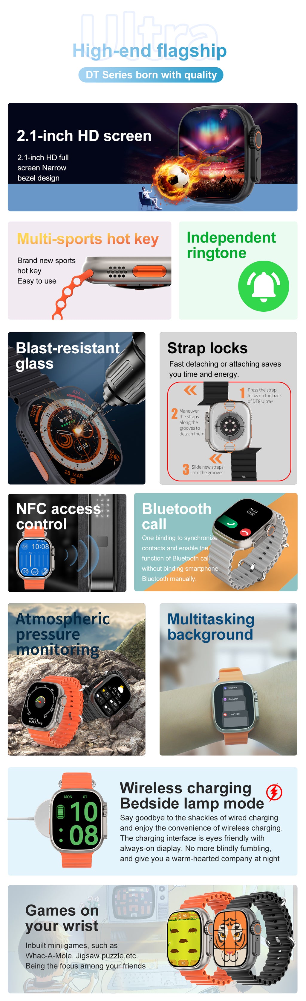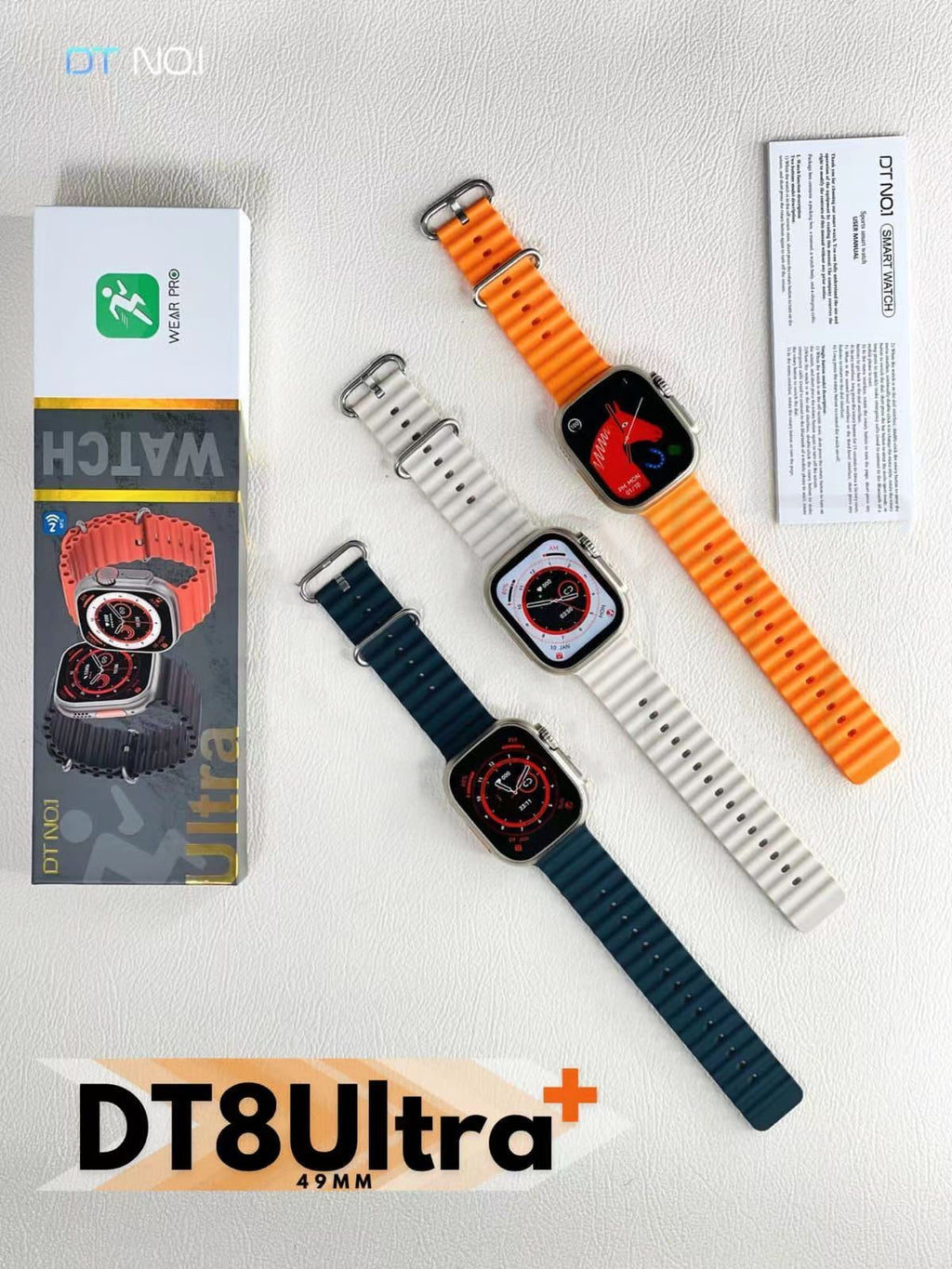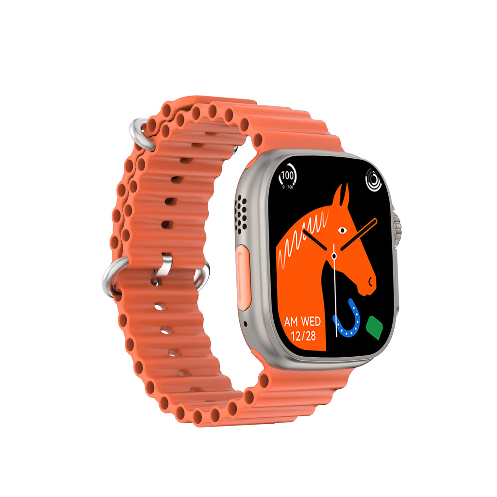 DTNO 1 DT8 Ultra Plus Smart Watch With Orange Strap Silver