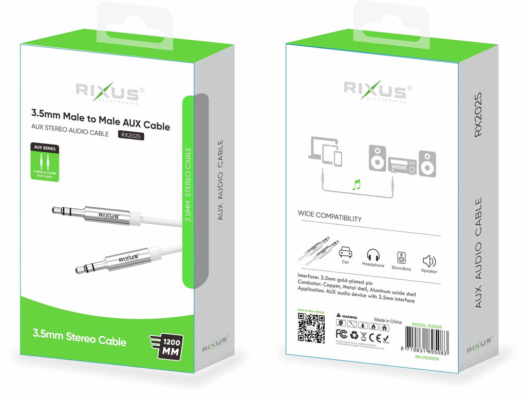 Rixus RX2025 AUX to AUX Audio Cable Male 3.5MM 120CM White