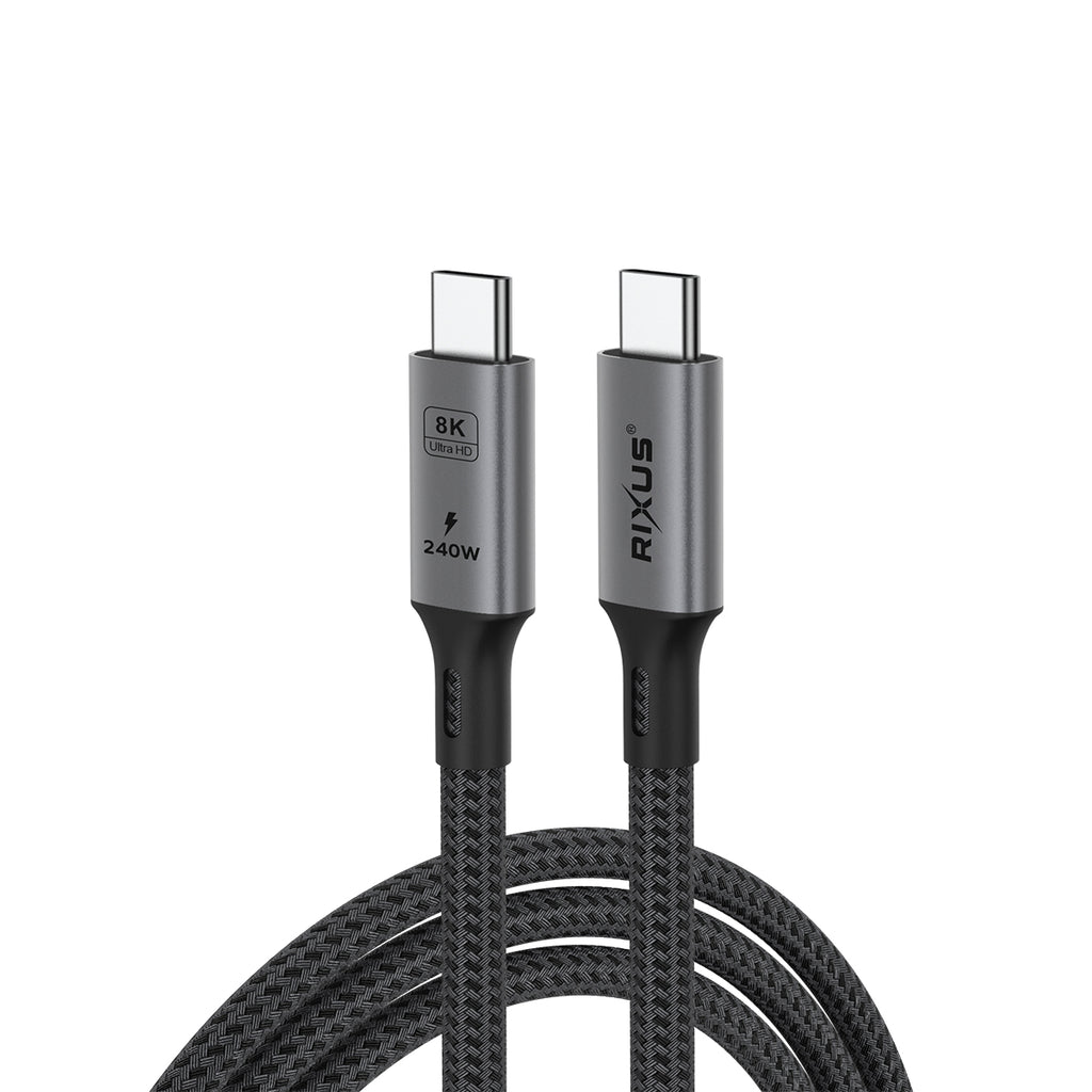 Rixus RXUC01 USB-C 4.0 To USB-C Cable 100CM 240W Grey