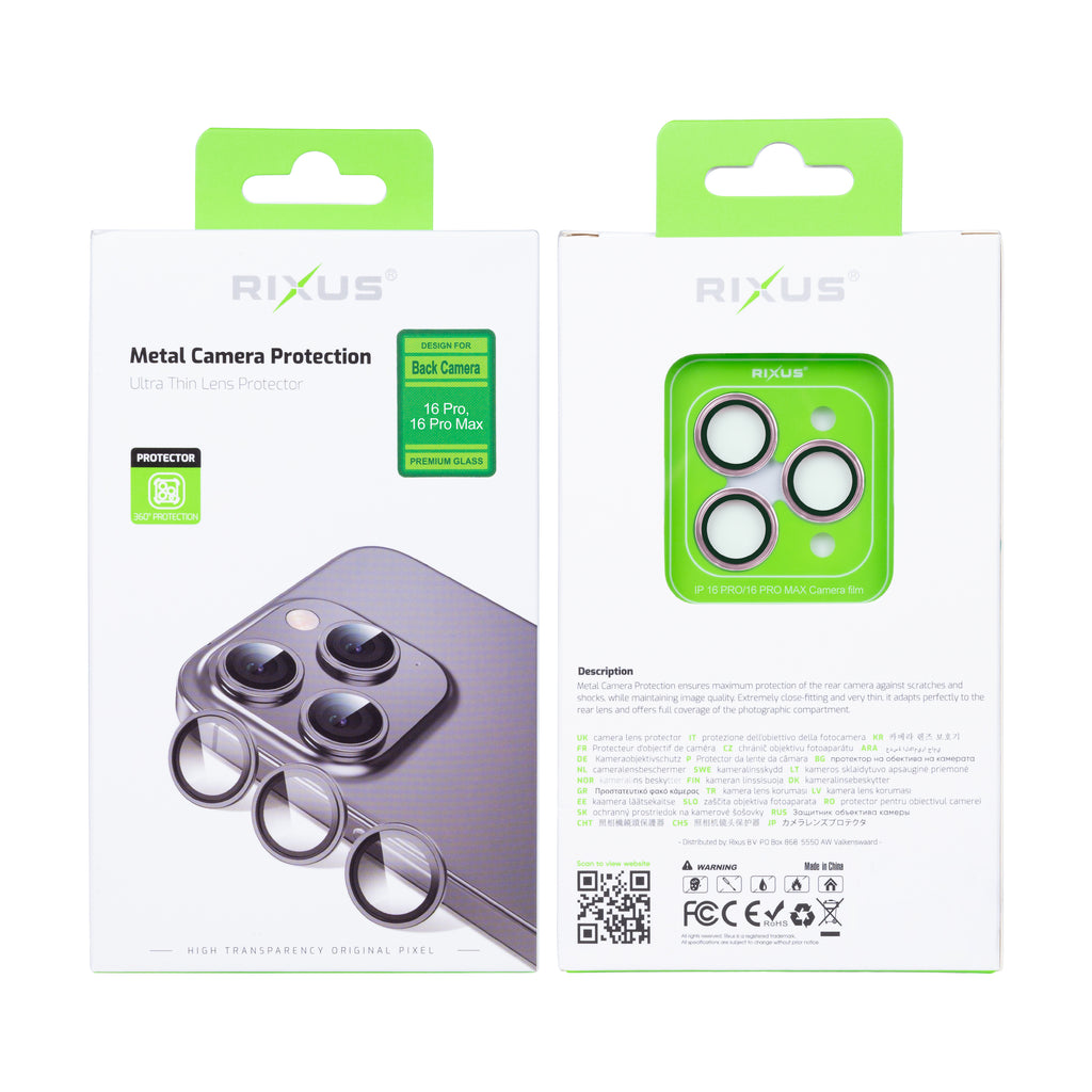 Rixus For iPhone 16 Pro, 16 Pro Max Metal Shield Camera Tempered Glass Rose Gold