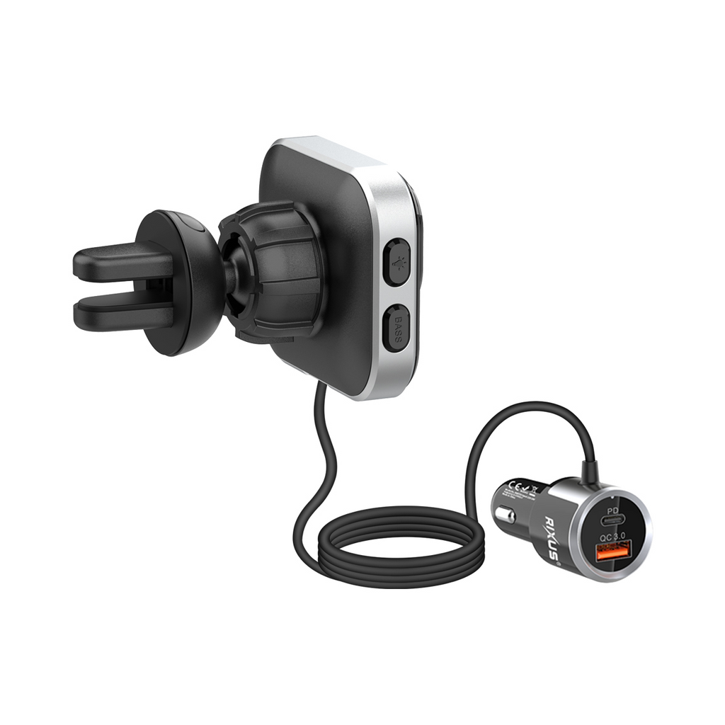 Rixus RXBT55 2 In 1 Bluetooth FM Transmitter And Car Adapter Black