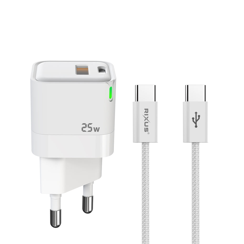 Rixus RXHC11 25W Wall Charger Kit With USB C to USB C Cable 100CM