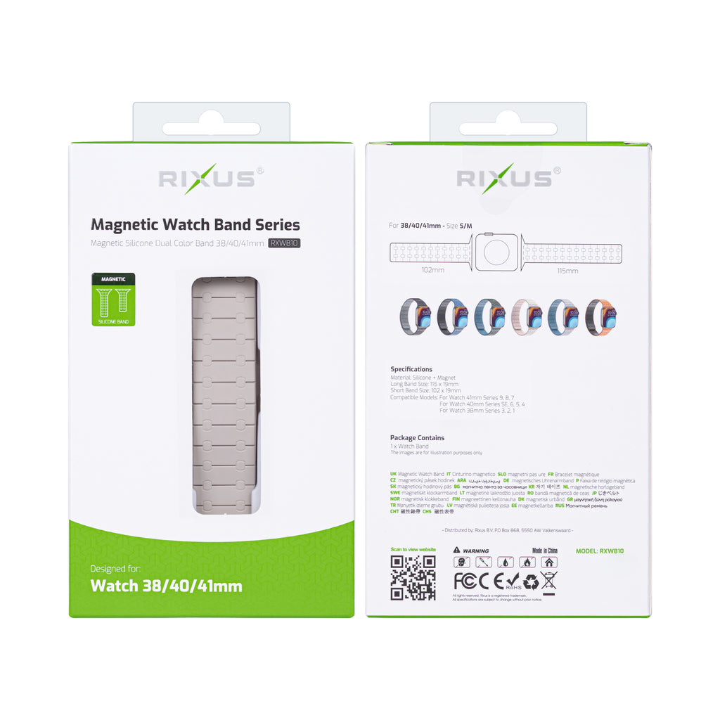 Rixus For Apple Watch 38mm, 40mm, 41mm Silicone Band With Magnetic White + Pink