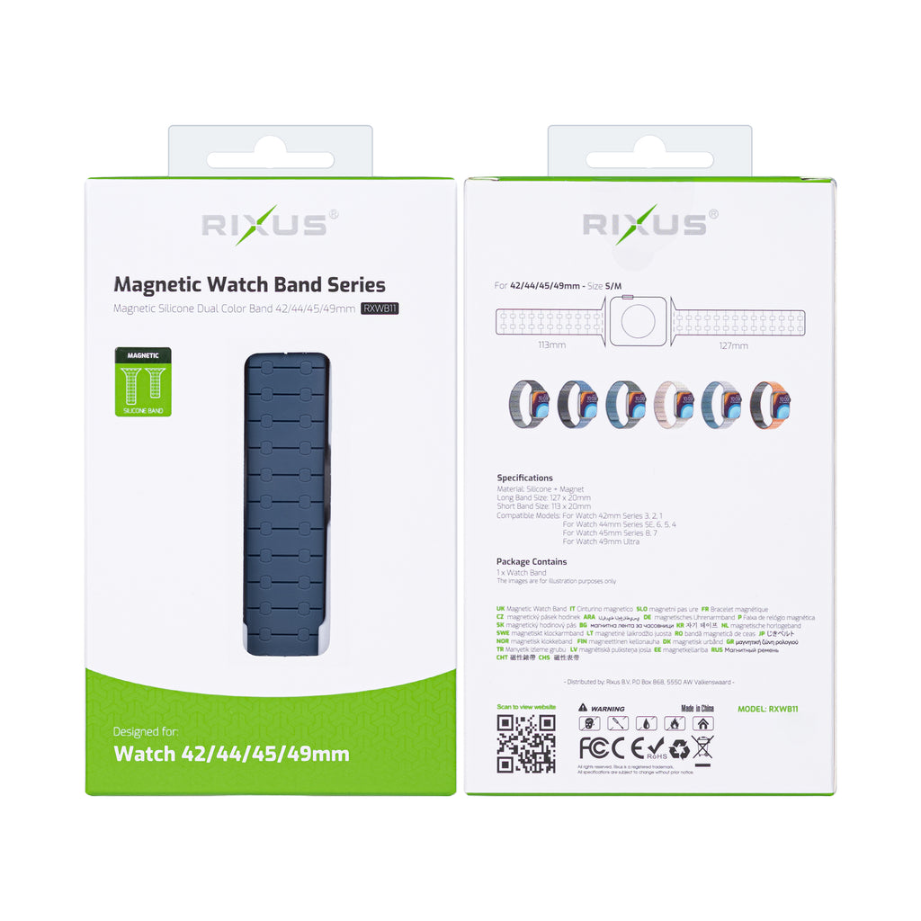 Rixus For Apple Watch 42mm, 44mm, 45mm, 49mm Silicone Band With Magnetic Blue + Midnight